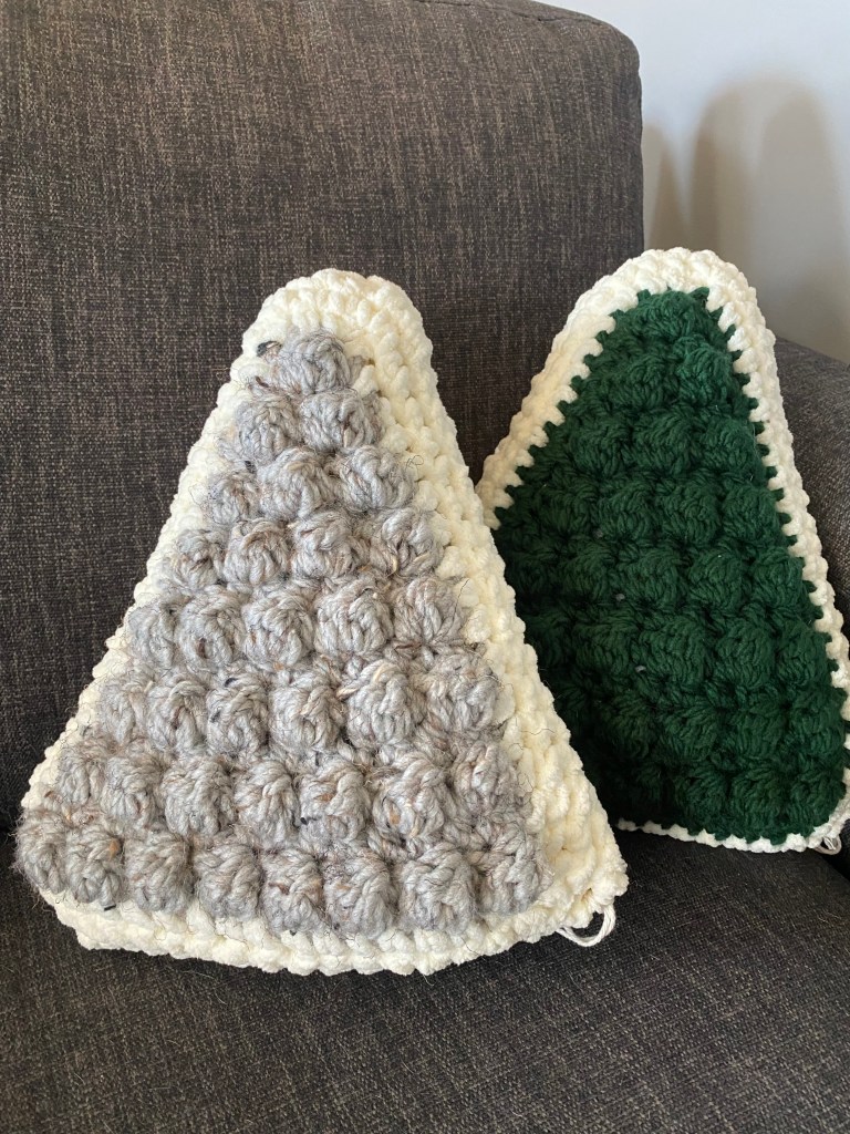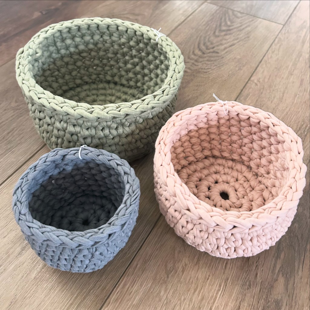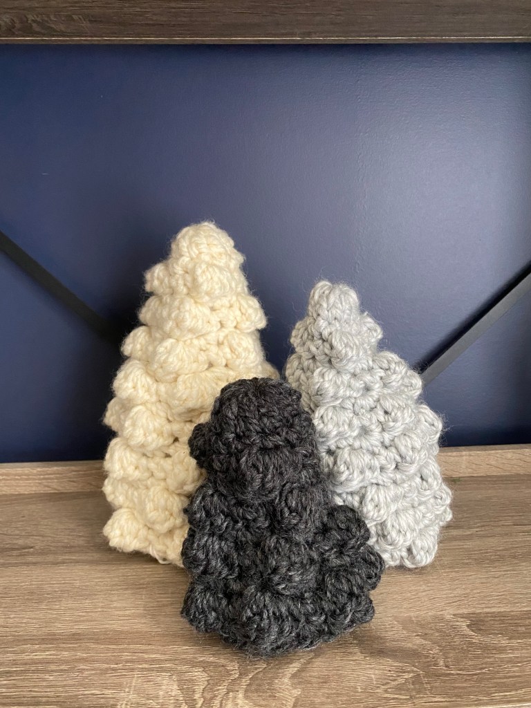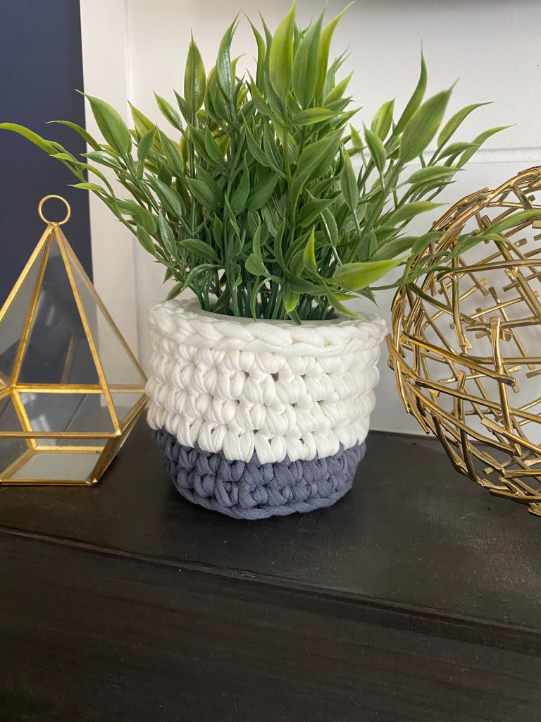 KNOTTY BASKETS $20+ | made with durable, soft but solid tshirt yarn, these baskets are awesome for holding a variety of items or adding some colour and texture to your decor. Available in assorted sizes and colours.KNOTTY POT $25| made with soft and solid tshirt yarn, the crochet knotty pot makes a great addition to your decor with a faux plant. Available in assorted colours.DECOR TREE $10+| decorative crochet bobble stitch trees available in 3 different sizes. Made with wool blended yarn. These make a great addition to your winter decor.